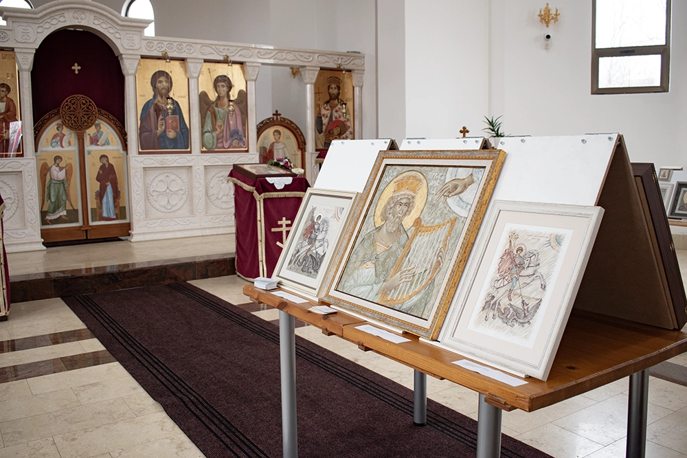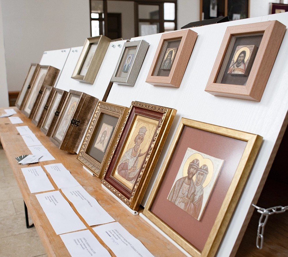У оквиру изложбе излажемо иконе како савремених, тако и светитеља ранијих епоха. Међу техникама које примењујемо у раду могу се пронаћи јајчана темпера, позлата, акрил, туш, свеж малтер, комбиноване технике, дуборез и сл.