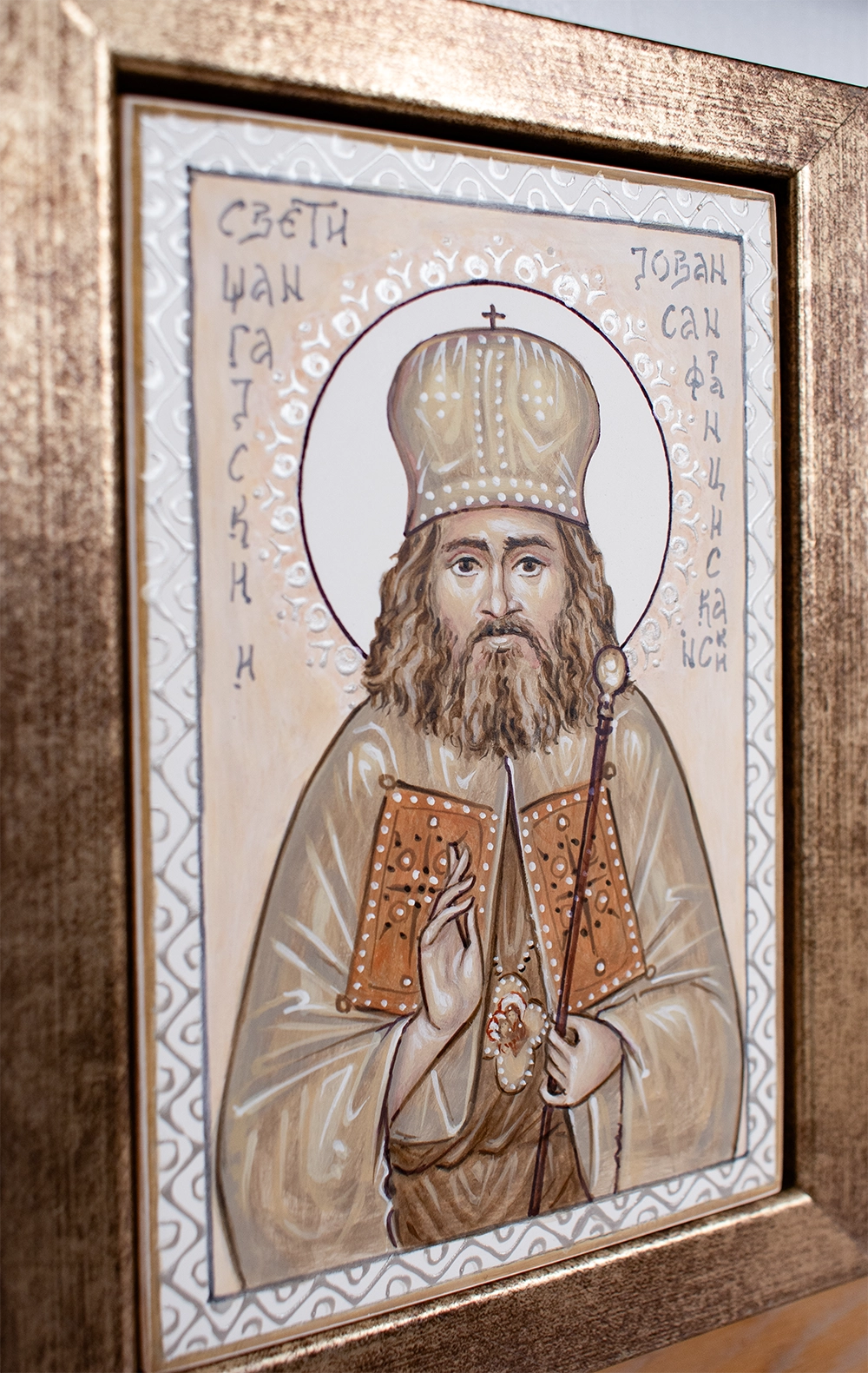 У процесу рада ове иконе посебна пажња је посвећена превођењу лика са фотографије у иконописни језички израз. То значи да чувам карактер и препознатљивост лика који нам је познат са фотографије, али при томе се удаљавам од реалистичног начина изражавања и изглед лика описујем системом осветљења и перспективе који су карактеристични за иконописачки језички кључ, у складу са теолошким дефинисањем иконе.